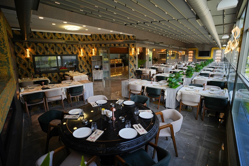 Restoran, usta şeflerin özenle hazırladığı kebaplardan taze mezelere kadar geniş bir menüyle damaklarınıza hitap ederken, alkollü içecekler ile keyifli bir yemek deneyimi sunuyor. Etin en lezzetli hali, mezelerin zenginliği ve seçkin içecek seçenekleri her anınızı daha özel kılmayı vadediyor. Ferah ve modern dekorasyonu, hem özel davetler hem de günlük yemekler için ideal bir atmosfer sağlıyor.